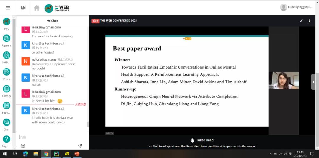 机器之心编辑部4 月 23 日,万维网顶会 WWW-2021(The Web Conference 2021: International World Wide Web Conference) 公布了本届会议的最佳论文奖冠亚军(Winner 和 Runner-Up),来自天津大学金弟副教授团队的论文《Heterogeneous Graph Neural Network via Attribute Completion》斩获最佳论文奖(Runner-Up)。