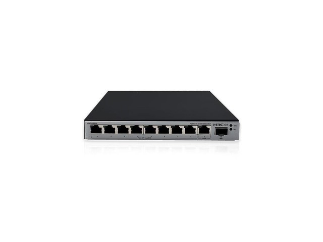 图为:H3C US210交换机丰富的端口类型,H3C US210交换机配有9个10/100/1000Base-T电口(包含两个uplink口,可作为上行口),1个1GSFP端口,支持“以太网口+光口”组合,适应各种场景组网需求,方便用户灵活组网;所有端口均具备千兆线速转发能力,满足不同用户所需。
