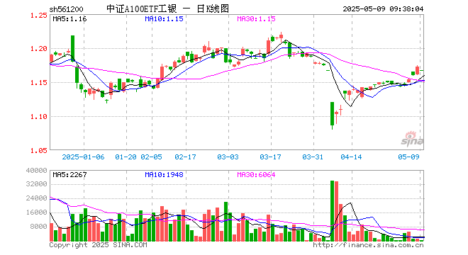 中证A100ETF工银(561200)业绩比较基准为中证A100指数收益率,管理人为工银瑞信基金管理有限公司,基金经理为史宝珖,成立(2023-12-22)以来回报为17.04%,近一个月回报为5.63%。