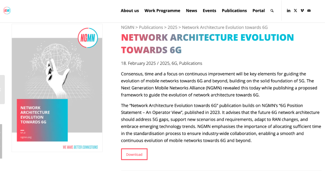 为了缓解这些挑战,拟议的框架主张采用AI内生、自治网络管理方法,以推动架构向6G转变。在其建议中,NGMN还呼吁灵活的网络架构、按需部署新功能,以及不断发展的技术与现有网络服务的兼容性。报告建议,将量子安全安全措施纳入新的基础设施将有助于加强网络弹性。报告还建议,6G空中接口需要比5G Advanced有显著进步,特别是在频谱效率、通感一体以及密集、低成本的设备连接方面。
