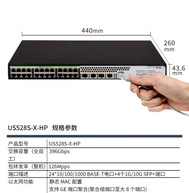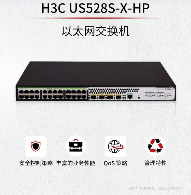 (中关村在线 四川行情)H3C US528S-X-HP交换机是新华三技术有限公司自主开发的新一代万兆上行以太网交换机产品,是为要求具备高性能、高端口密度、高上行速率且易于安装的网络环境而设计的第三代智能型可网管交换机。H3C US528S-X-HP提供24个10/100/1000 BASE-T(POE+)自适应以太网端口+4各1G/10G SFP+上行光口。在企业网中,可以作为小核心设备提供千兆到接入,最大万兆上行出口;在城域网或者行业用户中,向下可以提供千兆接入最终用户或汇接低端交换机,向上可以通过千兆或万兆光纤或者链路聚合汇聚到大容量核心交换机。
