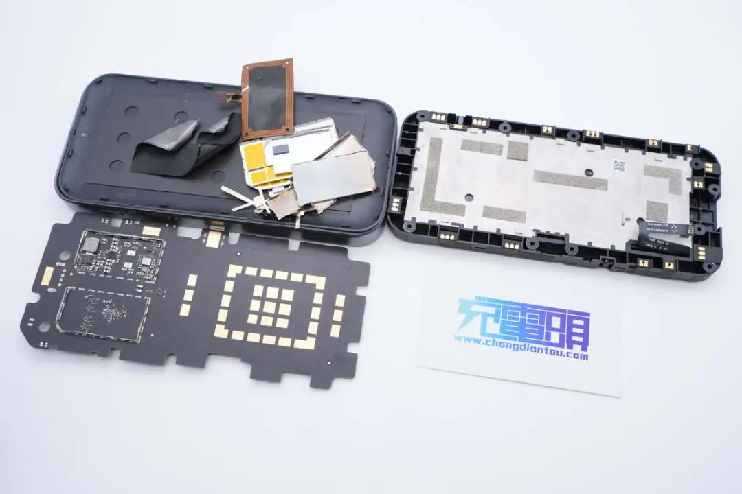 机子电路板上的芯片全部覆盖有金属屏蔽罩,避免干扰,主要发热芯片上还贴有导热垫帮助导热;电芯放置在凹槽里,凹槽区域采用铝合金材质,帮助电芯散热;无线充电线圈绕制紧密,线芯焊接牢固。这款产品整体做工优秀。